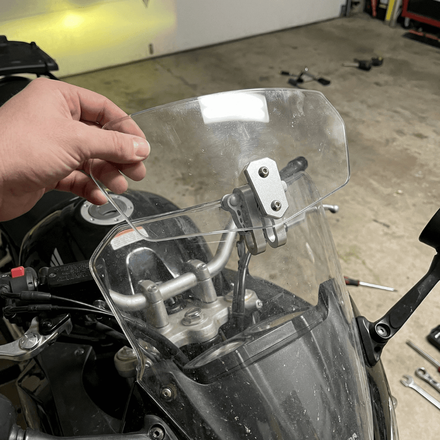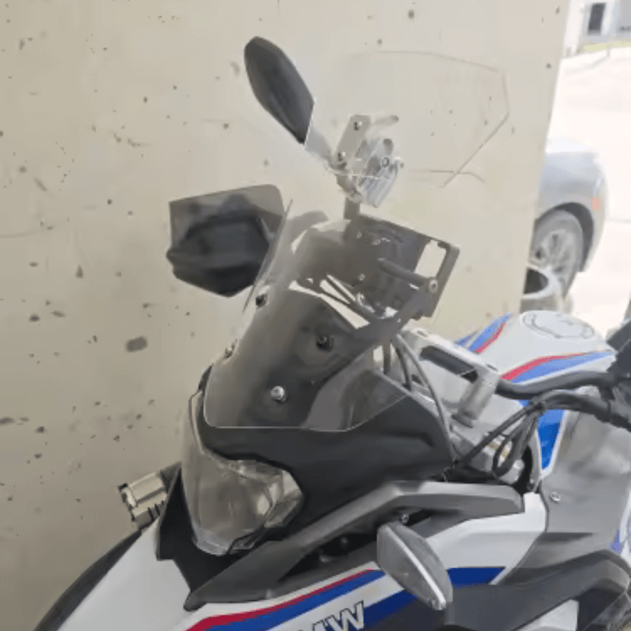 If your bike has a windscreen, yes. The adjustable clamp fits a wide range of screen thicknesses and profiles. Confirmed on BMW GS, Honda CB500X, NC700, Africa Twin, Kawasaki Versys, Triumph Tiger, Yamaha Tracer, Suzuki V-Strom, and more.