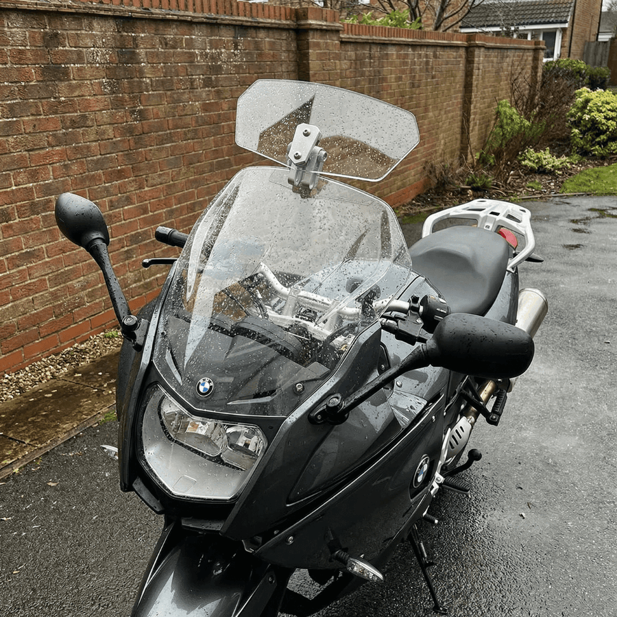 "Needed something to stop the buffeting. Motorway speeds on my BMW F800GT were a pain in the head. The standard screen was next to useless. Got this as a cheap fix, not really expecting much. Main test: a 700-mile round trip, four hours of rain on the way home. After a final adjustment, the buffeting is gone. Cheap and effective."