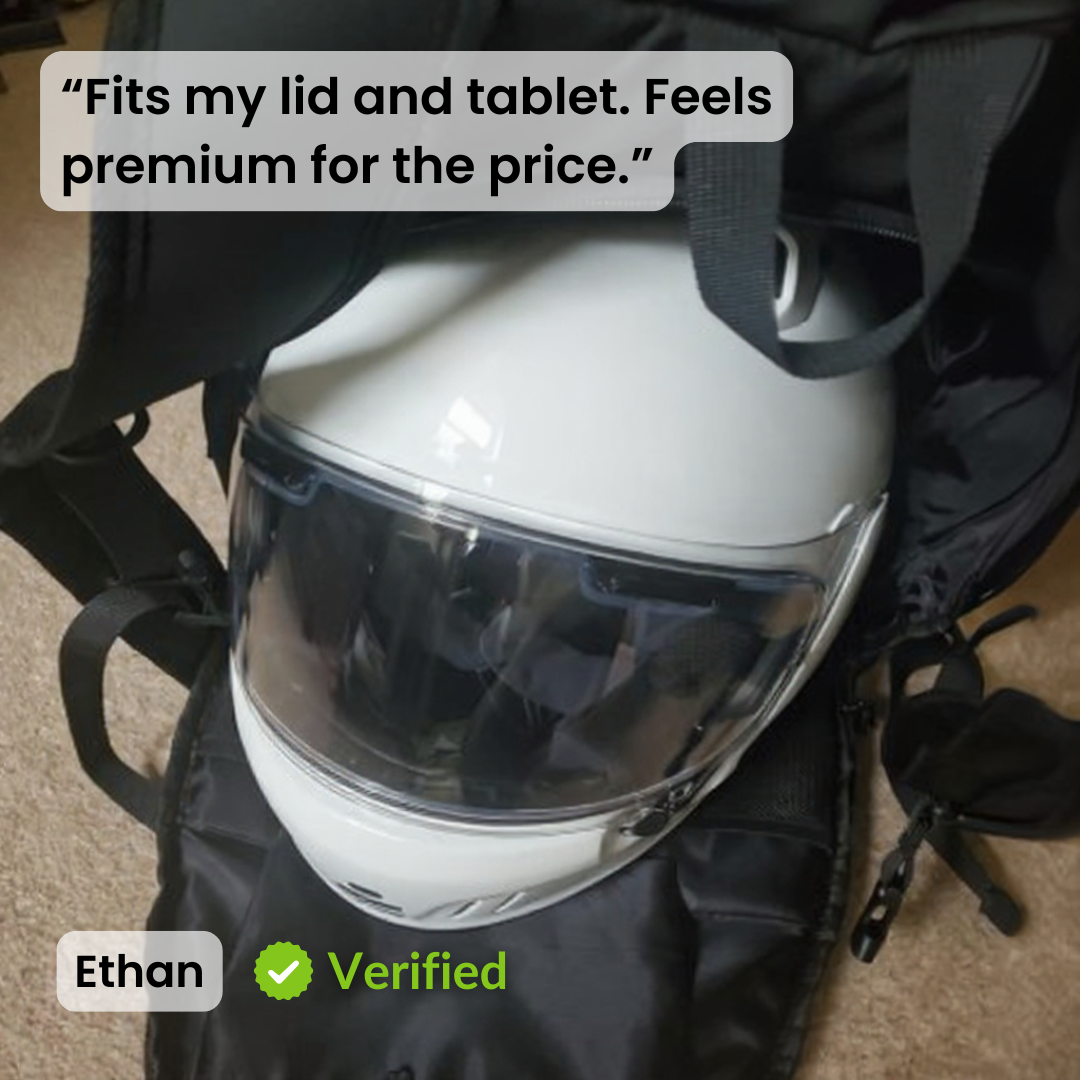 Premium, fully-sealed waterproof zippers keep rain, snow, and road spray from seeping in. Your gear stays bone-dry in all weather, so you can ride without worrying about your laptop, clothes, or documents.