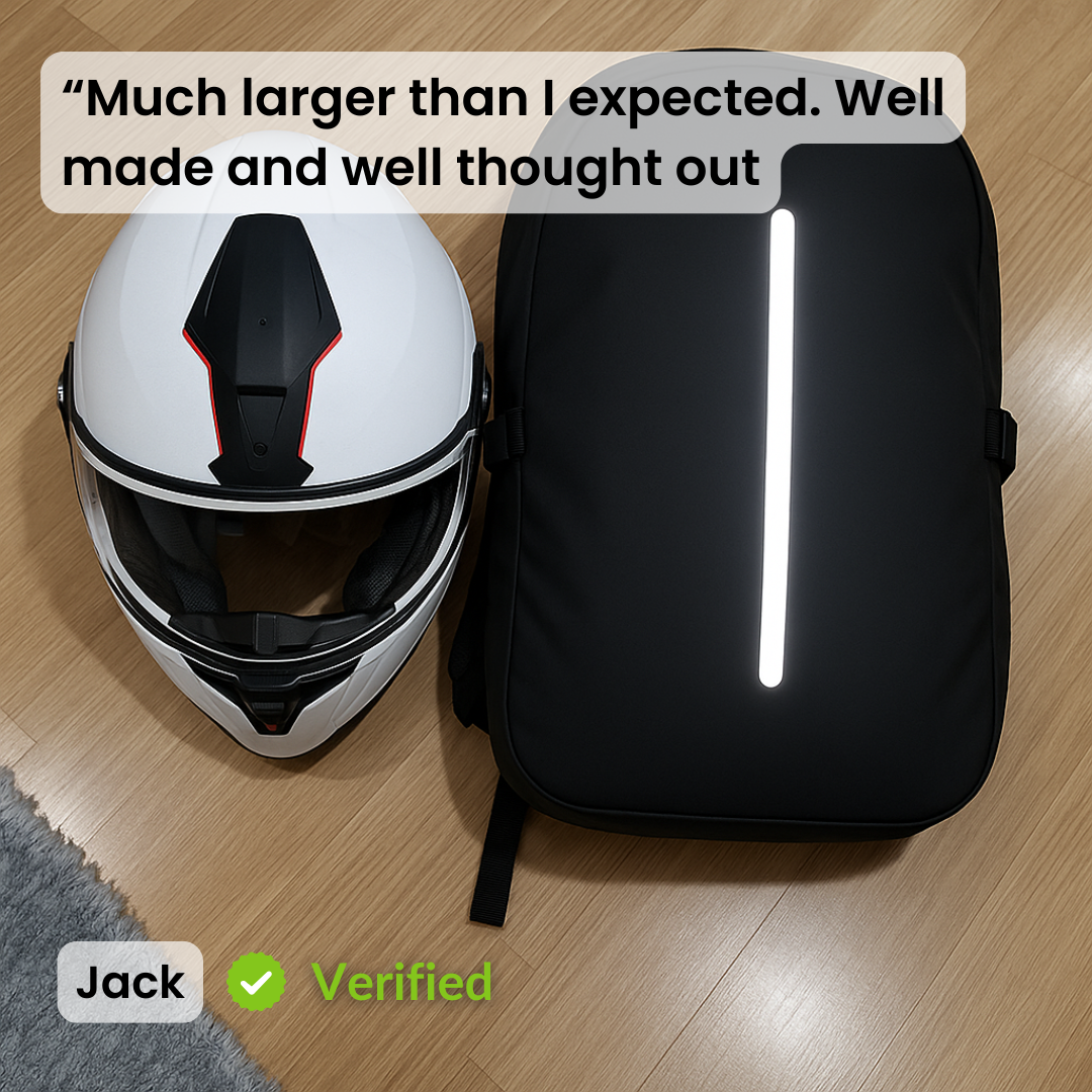 A sleek, integrated reflective strip runs along the bag’s exterior, bouncing light straight back at drivers’ headlights. It boosts your visibility on dark roads without ruining the backpack’s clean look.